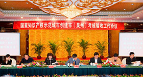 [本報訊]2011年12月27日,國家知識產權局專利管理司司長馬維野率考核驗收組蒞臨泉州,考核驗收泉州市國家知識產權示范城市創建市有關工作。泉州市黃少萍市長、林伯前副市長等領導出席會議并向考核組匯報創建工作。潯興股份公司吳樂進總裁應邀出席大會并在大會上作典型發言。