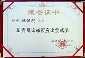 【本報訊】6月17日,第四屆世界閩商大會在福州舉行。會上,福建省人民政府為238位非公有制經濟人士頒發了“閩商建設海西突出貢獻獎”,我司施能坑董事長榮膺該項殊榮。