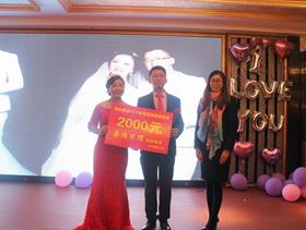 11月28日晚上7點在凱萊大酒店,福建公司一對新人田江圍與段代娟走進了婚姻的禮堂。當晚的結婚典禮上,人資行政系統何曉玲副總經理為他們頒發了2000元喜結良緣旅游基金。兩位員工都是我公司的優秀員工,他們相識于潯興,相戀于潯興,在今年的七夕活動中,他們受邀前來參加,活動規定現場牽手成功的且在2017年12月前結婚的情侶可獲得喜結連理旅游基金。公司通過各種員工活動積極營造和諧潯興、幸福家園的生活環境,提高員工們的幸福指數,讓員工們更有歸屬感。